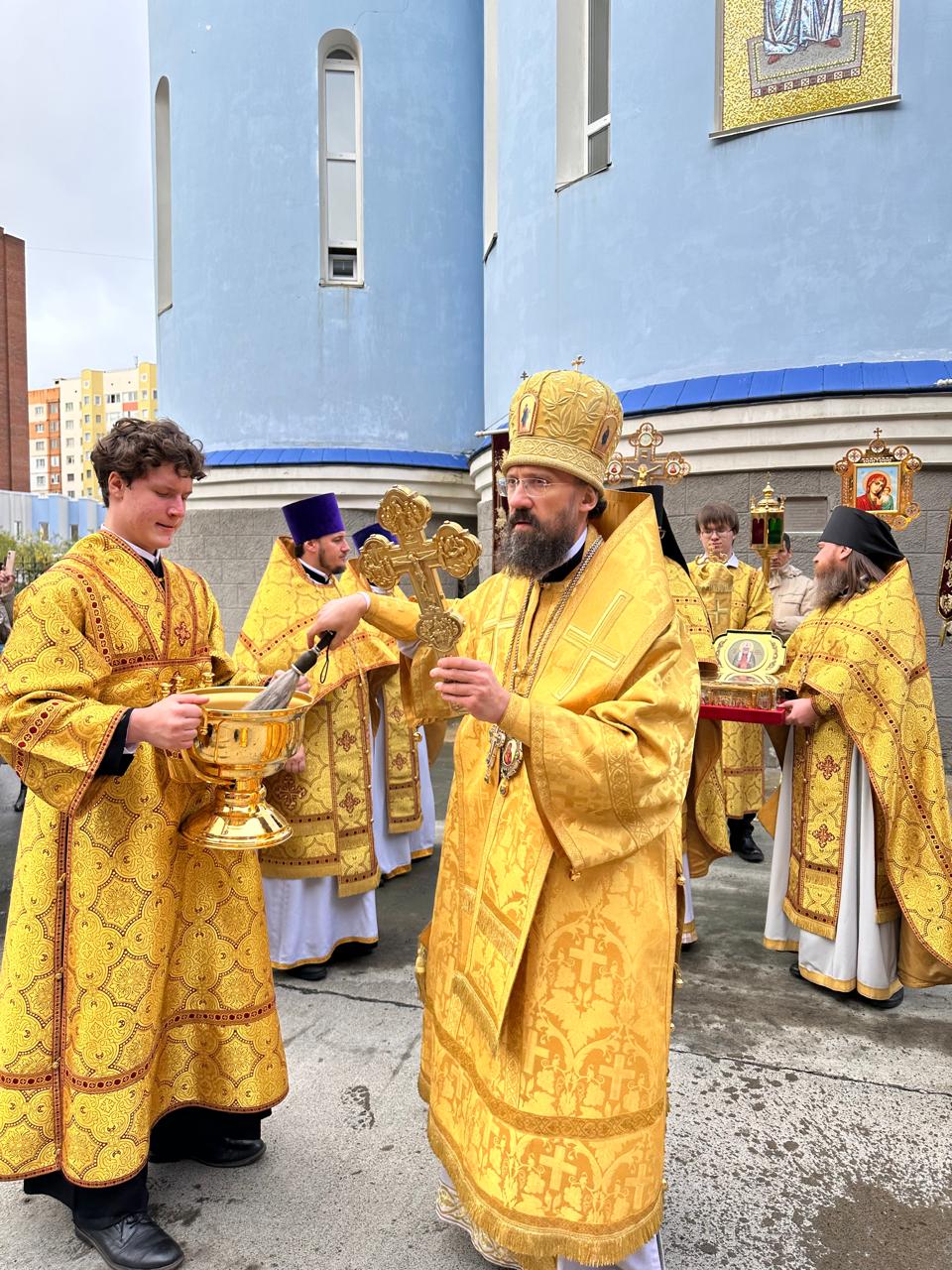 По окончании Литургии был совершён молебен святому Патриарху Тихону и крестный ход с мощами святителя вокруг кафедрального собора.