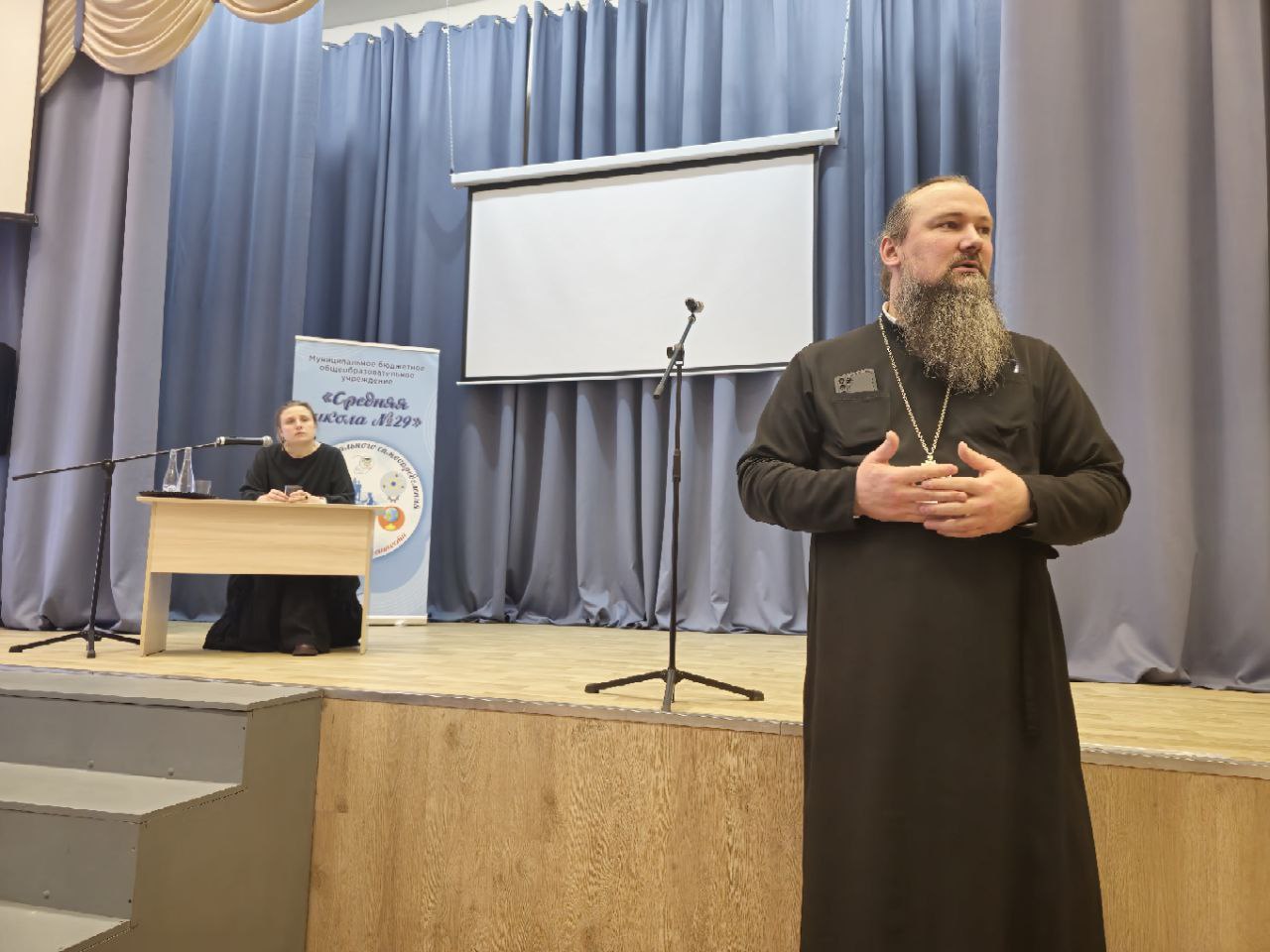Перед началом мероприятия с приветственным словом к гостям и участникам обратился заместитель руководителя отдела религиозного образования и катехизации Норильской епархии иерей Антоний Проняев.