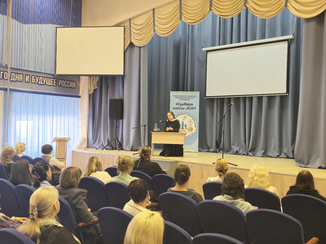 Далее в МБОУ «СШ № 29» города Норильска Анна Алексеевна Сапрыкина встретилась с педагогами общеобразовательных учреждений города по модулю «Основы православной культуры» и педагогами воскресных школ храмов Норильска.