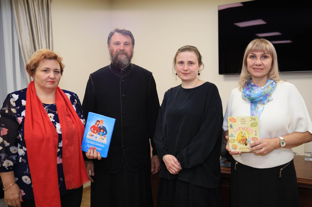 На встрече также присутствовали председатель благотворительного фонда социальных программ «Территория добра» Светлана Владимировна Зенина; председатель комиссии Норильской епархии по культуре Олеся Александровна Проняева; руководитель отдела религиозного образования и катехизации Норильской епархии Наталья Вячеславовна Дубинко.