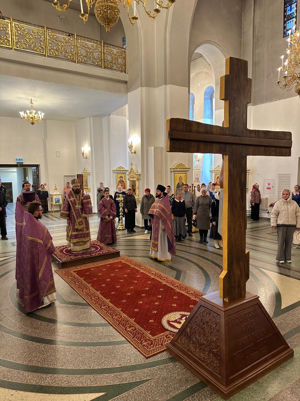 Накануне, вечером 26 сентября, епископ Агафангел совершил всенощное бдение. В центре собора впервые была установлена копия Животворящего Креста (Годеновского креста), найденного в XV веке недалеко от города Ростова Великого. С этого года копия Годеновского креста будет пребывать в кафедральном соборе города Норильска.