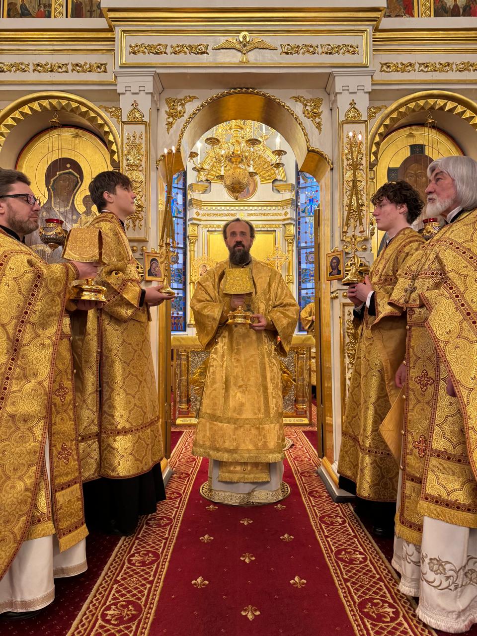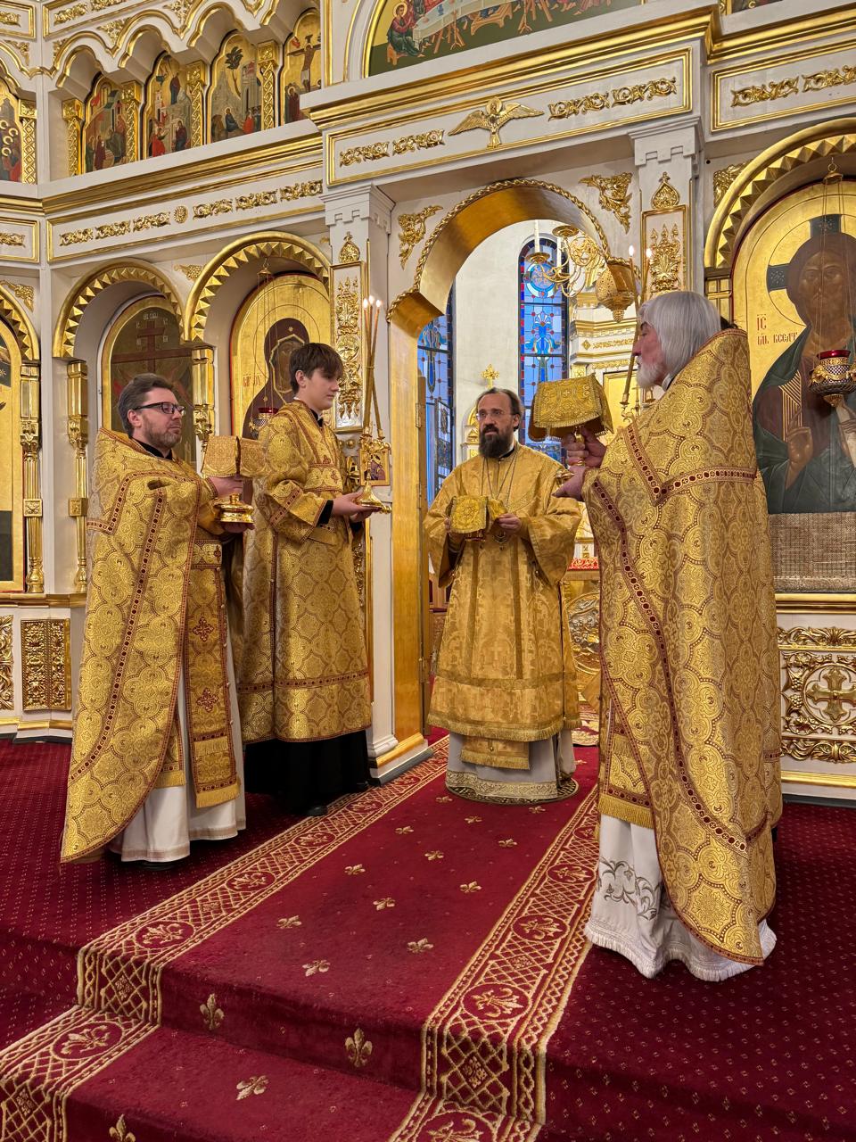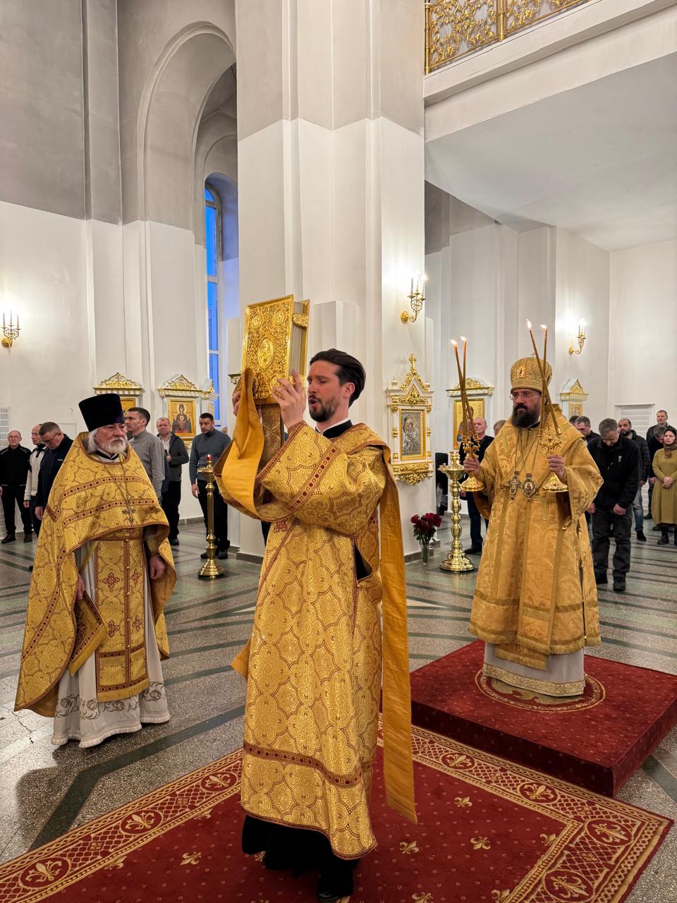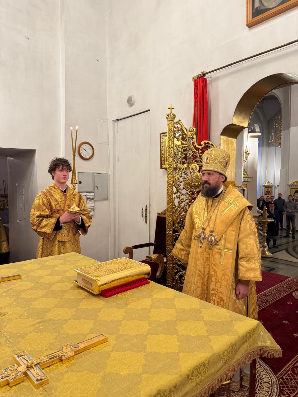 За Литургией Его Преосвященству сослужили духовник Норильской епархии протоиерей Владимир Иванов и ключарь кафедрального собора иконы Божией Матери «Всех скорбящих Радость» г. Норильска иерей Иоанн Помазкин.