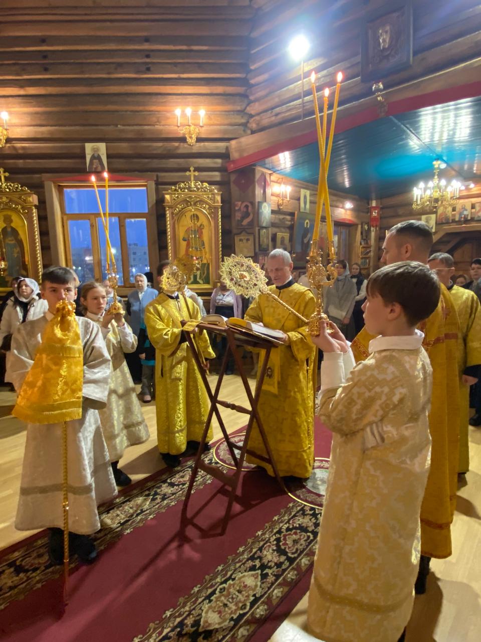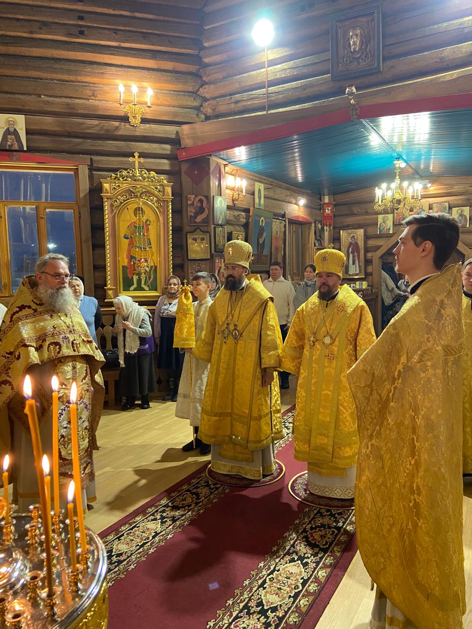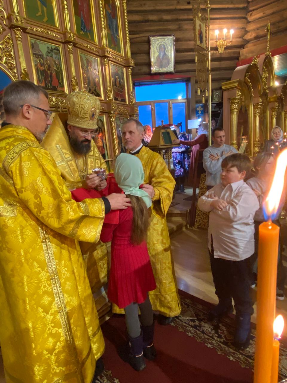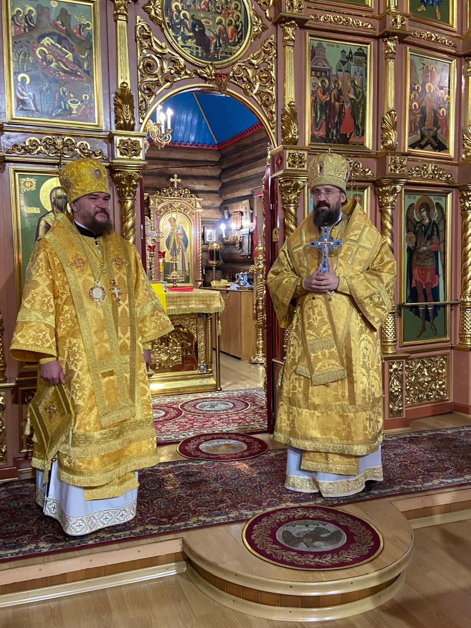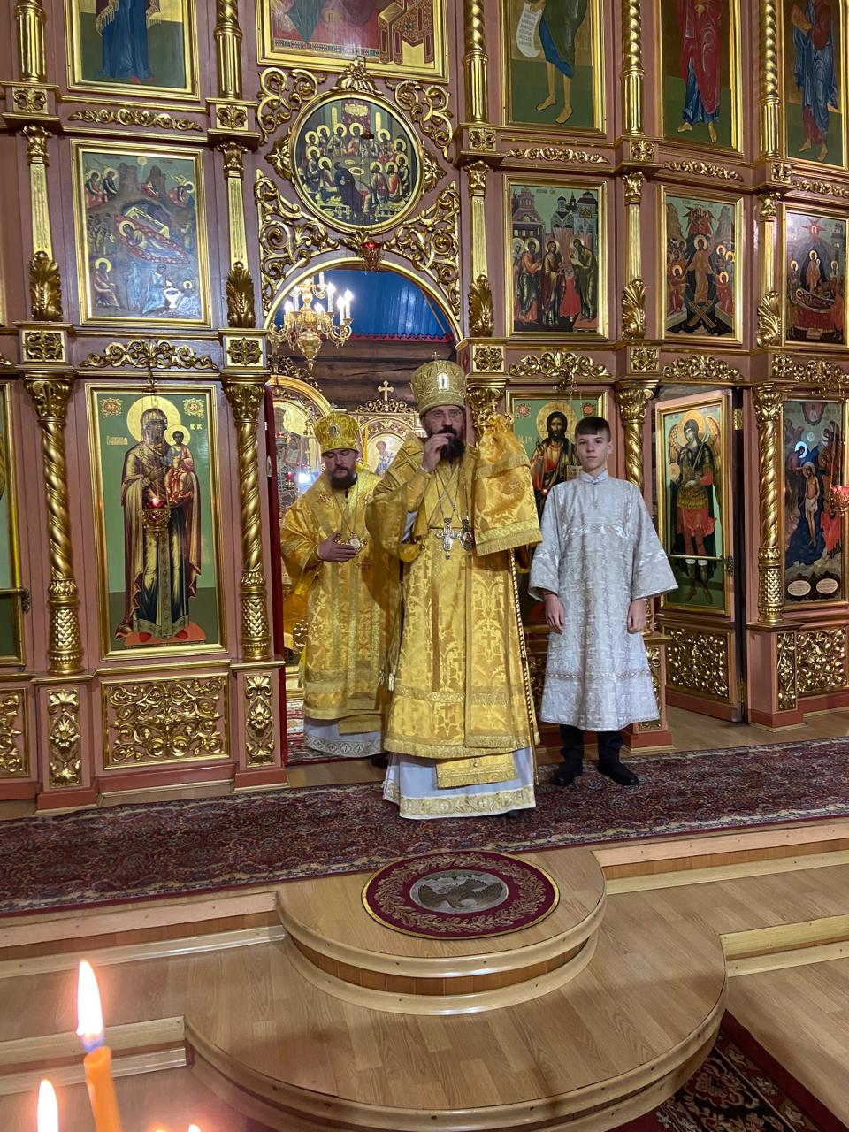 За Литургией архиереям сослужили руководитель отдела религиозного образования и катехизации Нарьян-Марской епархии иерей Александр Симора и руководитель отдела Норильской епархии по тюремному служению иерей Александр Попов.