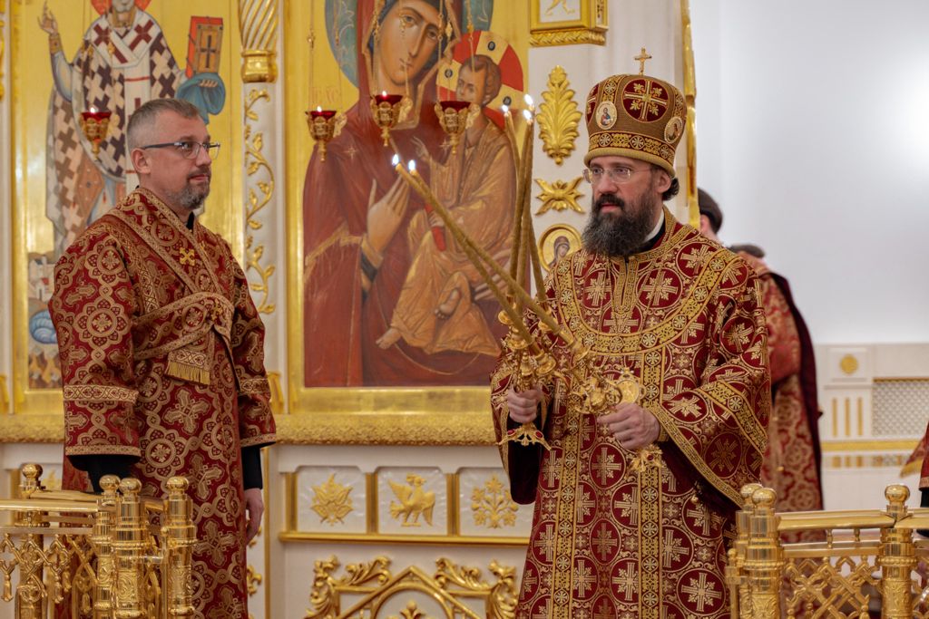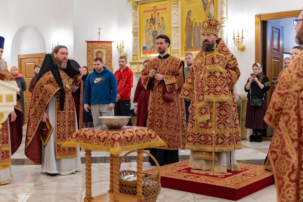 За Литургией Его Преосвященству сослужили: секретарь Норильской епархии, настоятель храма великомученицы Варвары в районе Талнах города Норильска иеромонах Герман (Мельников); благочинный Норильского округа, настоятель храма новомучеников и исповедников Церкви Русской в г. Норильске иерей Геннадий Дубинко; руководитель отдела Норильской епархии по тюремному служению, настоятель храма Преображения Господня в районе Кайеркан города Норильска иерей Александр Попов; духовенство города Норильска.