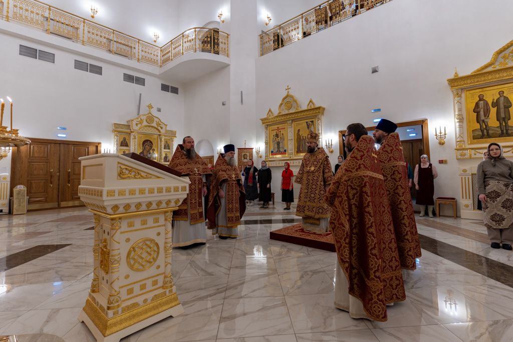 На сугубой ектении были вознесены особые прошения, Архипастырь прочитал молитву о Святой Руси. Затем была прочитана молитва о шахтёрах и горняках.