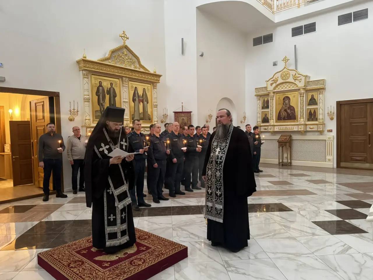 В храме присутствовали: исполняющий обязанности генерального директора ФГУП «ВГСЧ» Шполтаков Олег Владимирович; командир Норильского отряда ВГСЧ Сабиров Анатолий Гусманович; личный состав горноспасательной части, расположенной в районе Талнах.