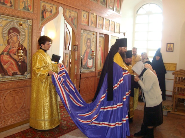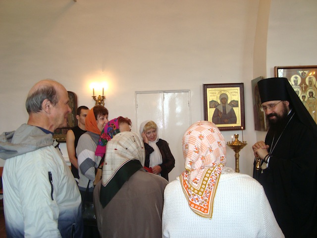 Сразу после прибытия в Туруханск Владыка Агафангел и сопровождающие его лица направились в Свято-Троицкий Туруханский монастырь, где был отслужен молебен у раки с мощами святого мученика Василия Мангазейского. Владыка был с любовью встречен братией монастыря, настоятелем которого он был в течение последних восемнадцати лет, и прихожанами.
