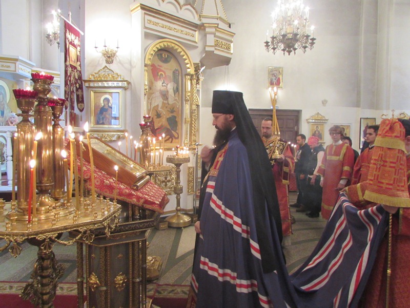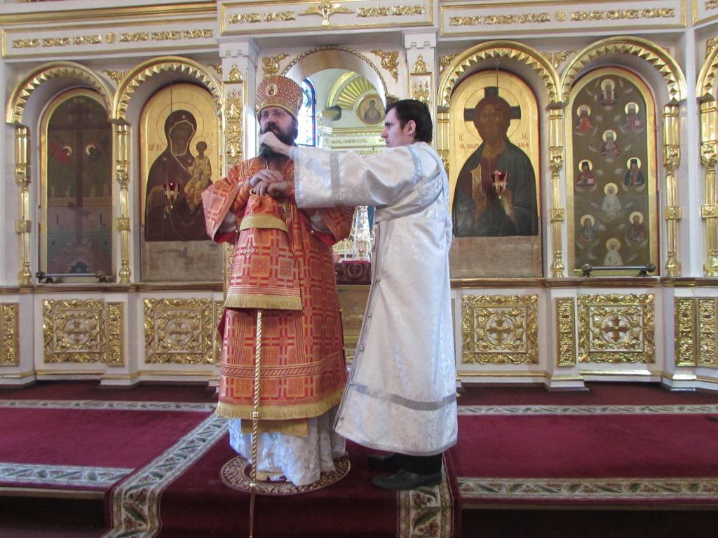 Его Преосвященству сослужили: секретарь Норильской епархии иеромонах Герман (Мельников); благочинный Норильского округа протоиерей Владимир Иванов; руководитель епархиального отдела по взаимодействию с силовыми структурами протоиерей Димитрий Харцыз; штатный клир собора.