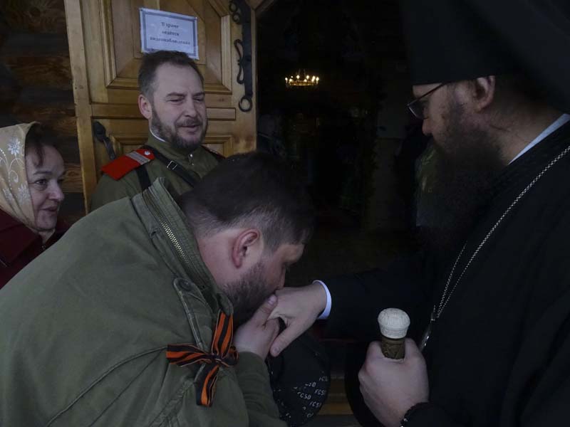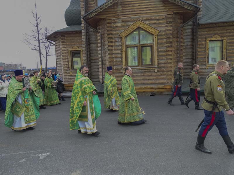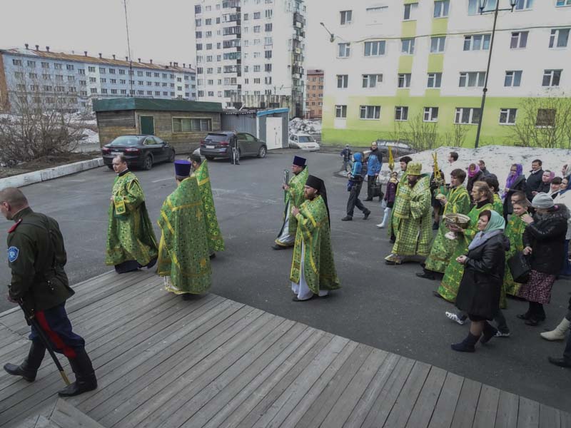 В этот день храм с трудом вместил всех желающих помолиться в день Святой Пятидесятницы вместе с Владыкой и почетными гостями прихода. Порядок в храме и стройность Крестного хода обеспечивали реестровые казаки Талнахского хутора во главе с атаманом Андреем Хоруженко. А когда многочисленный крестный ход вышел на территорию храма, холодный ветер отступил, и выглянуло солнце и сразу стало понятно, что завтра и на Таймыр приходит лето.