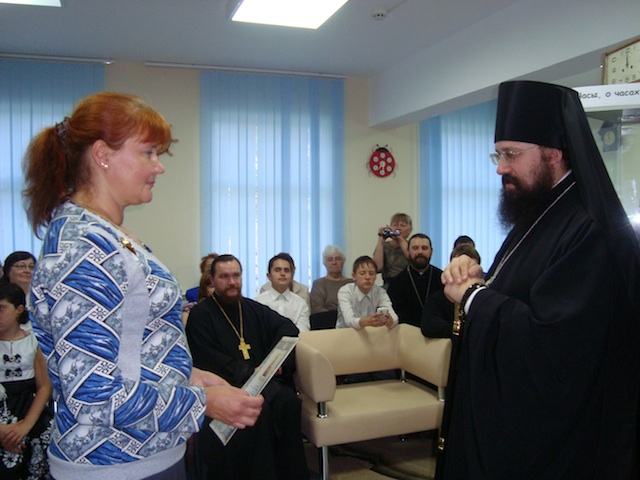 Епископ Агафангел вручил грамоту за усердные труды директору музея Т.Ю. Сергиенко и поблагодарил ее за сотрудничество с Туруханским благочинием в деле духовного образования жителей района.