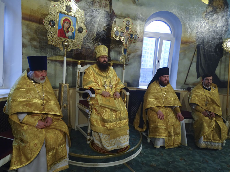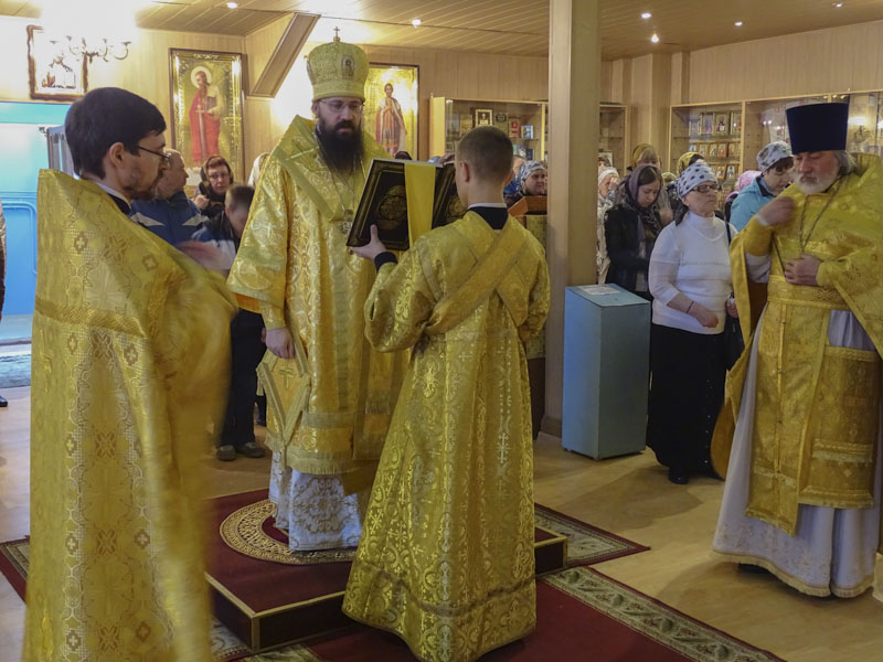 Его Преосвященству сослужили: секретарь Норильской епархии иеромонах Герман (Мельников), благочинный Норильского округа протоиерей Владимир Иванов; руководитель епархиального отдела по социальной работе и церковной благотворительности иерей Сергий Андреев.