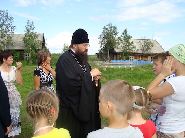 В Старотуруханске под открытым небом у Поклонного Креста, на месте разрушенного Преображенского собора, Владыка Агафангел совершил молебное пение в честь праздника святого равноапостольного князя Владимира в память Крещения Руси. После беседы с жителями деревни Владыка вручил им иконы святого мученика Василия Мангазейского с благословением Святейшего Патриарха. Для лиц, пожелавших принять Крещение, была передана специально подобранная литература, позволяющая самостоятельно начать подготовку к принятию таинства.