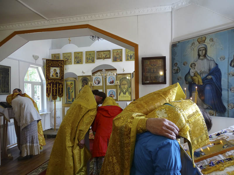 В этот знаменательный день ему сослужили благочинный Туруханского благочиния иерей Геннадий Дубинко, настоятель Свято-Троицкого Туруханского монастыря игумен Софроний, настоятель освящаемого храма иерей Александр Попов и штатный священник кафедрального собора города Норильска иерей Георгий Михайлов.