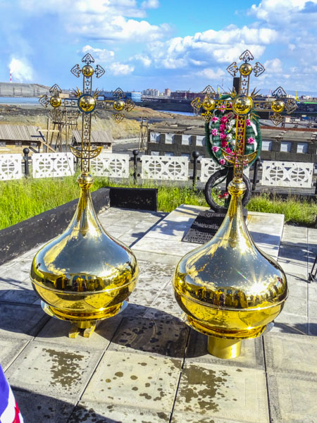 b_250__16777215_00_images_news_10.07.2015_Освящение_куполов_Главная.jpg10 июля 2015 года на территории мемориального памятника «Норильская Голгофа» епископ Норильский и Туруханский Агафангел совершил молебен и освятил купола, подготовленные для установки на куполе часовни и на главном входе в мемориал.