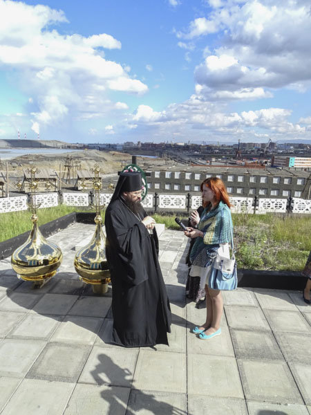 На молебне присутствовали руководитель аппарата директора Заполярного филиала ОАО «ГМК «Норильский никель» Агибалов Геннадий Сергеевич, директор департамента безопасности ЗФ ГМК “Норильский никель” Авдеев Юрий Иннокентьевич,председатель Норильского общества защиты жертв политических репрессий Елизавета Иосифовна Обст, представители православной общественности, пресса и, конечно, строители, которым предстоит совершить подъем  крестов на мемориальные объекты.