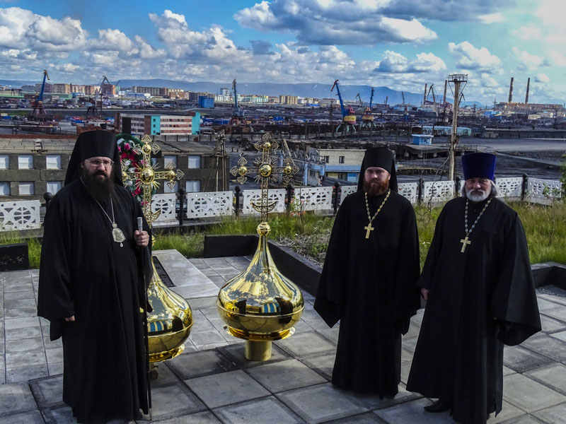 После совершения богослужения Владыка Агафангел обратился к собравшимся с кратким словом. Архипастырь поблагодарил всех, кто принял участие в обновлении мемориального памятника, особенно отметив  Заполярный филиал Норникеля, который  считает своим нравственным долгом делать все для увековечивания памяти людей,  начинавших на таймырской земле отечественную металлургию, закладывавших основы процветания комбината и города Норильска.