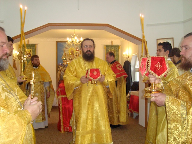 На малом входе Владыка Агафангел наградил правом ношения набедренника священника Геннадия Дубинко. По окончании Богослужения Владыка также вручил иконы святого мученика Василия Мангазейского с благословением Святейшего Патриарха главе поселка Ирине Измайловне Хвостовой и ктитору храма Наталье Владимировне Диановой как награду за неоценимый вклад в сооружение храма и труды, понесенные во благо Православной церкви.