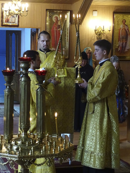 За Богослужением были вознесены особые прошения на сугубой ектении и прочитана молитва о мире на Украине.