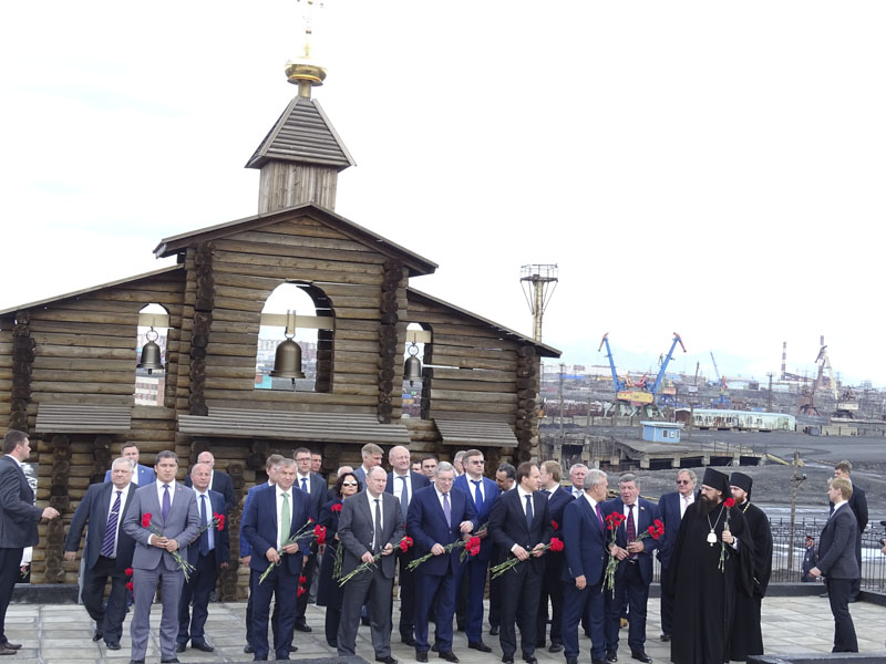 Затем почетные гости, руководители Заполярного филиала, Градоначальники возложили цветы к вечному огню у памятника героям Великой Отечественной войны. Также участники празднований почтили память тех, кто своим трудом закладывал основы норильской металлургии и нашего города, и возложили цветы на мемориальном комплексе «Норильская Голгофа».