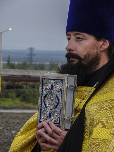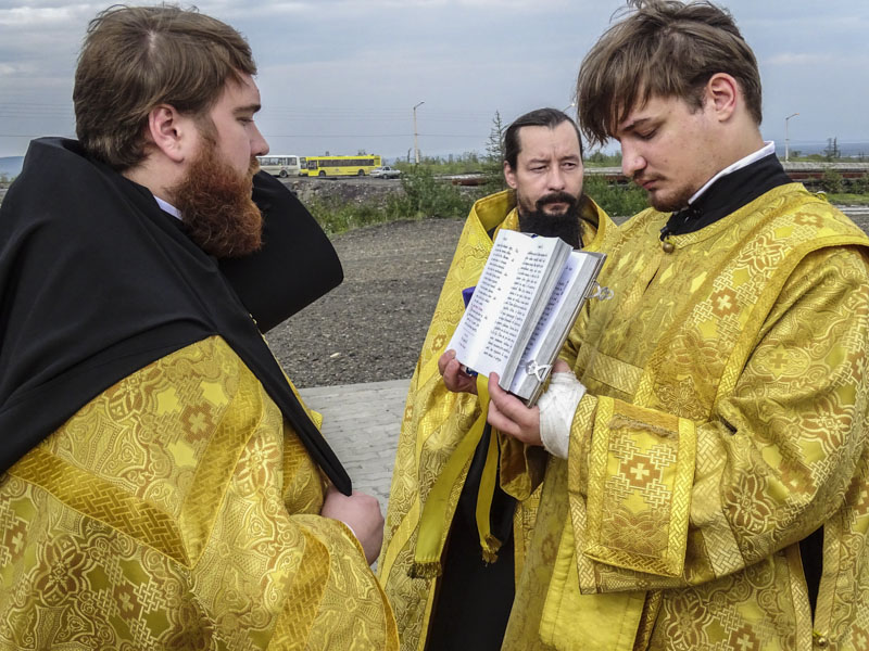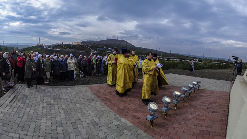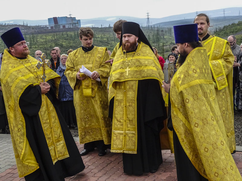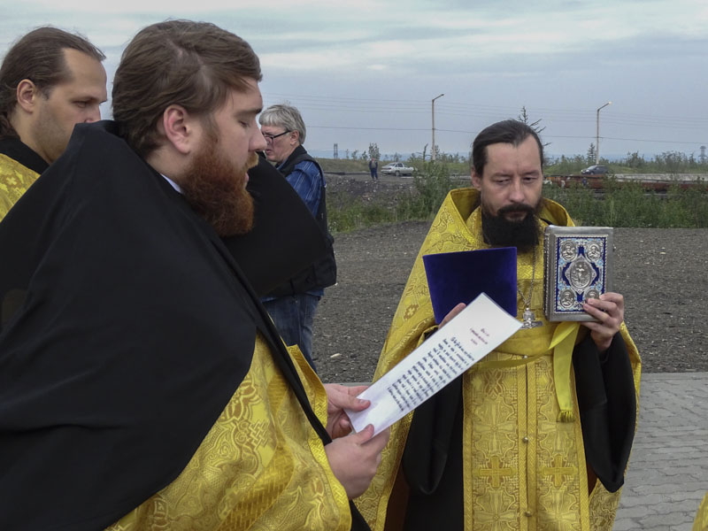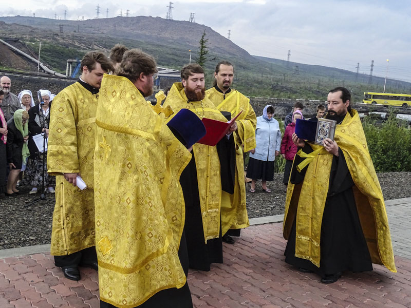 По благословению Преосвященнейшего Агафангела, епископа Норильского и Туруханского, богослужение возглавил секретарь Норильской епархии в сослужении настоятеля Свято-Троицкого храма района Талнах протоиерея Даниила Тихонова и штатного священника Норильского кафедрального собора в честь иконы Божией Матери «Всех скорбящих Радость» иерея Георгия Михайлова.