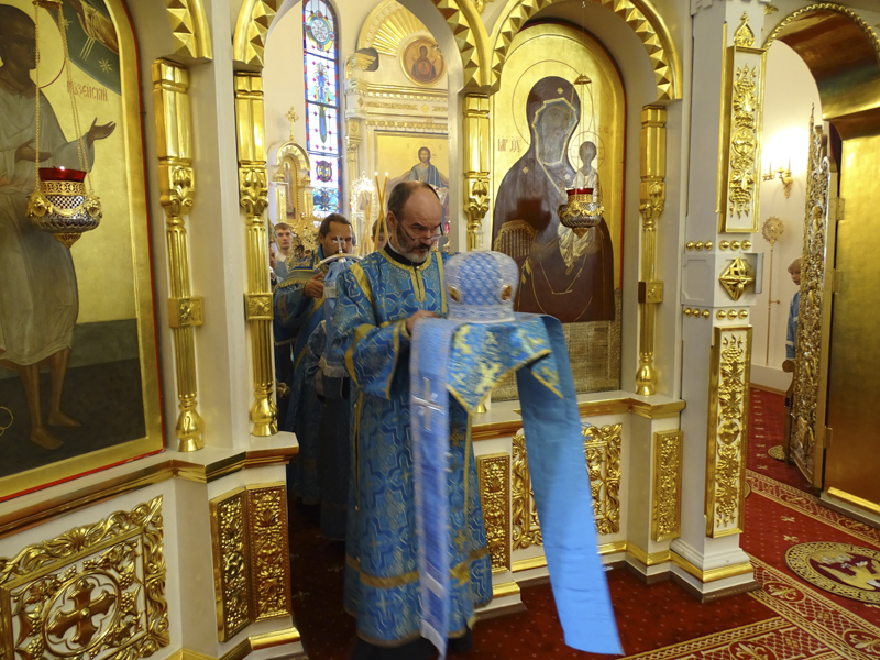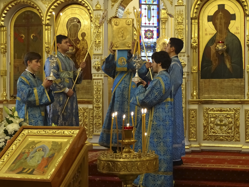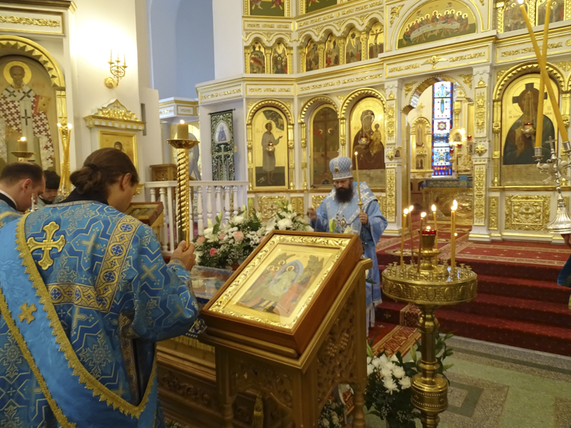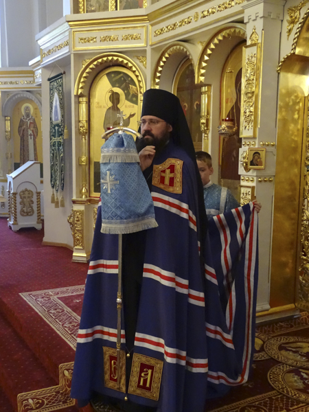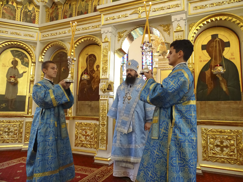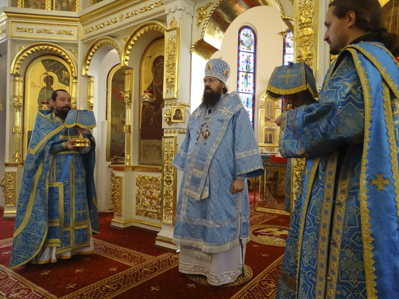 30 августа 2015 года, в Неделю 13-ю по Пятидесятнице » Преосвященнейший епископ Агафангел совершил Божественную литургию в кафедральном соборе в честь иконы Божией Матери «Всех скорбящих Радость».