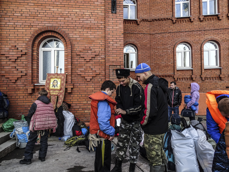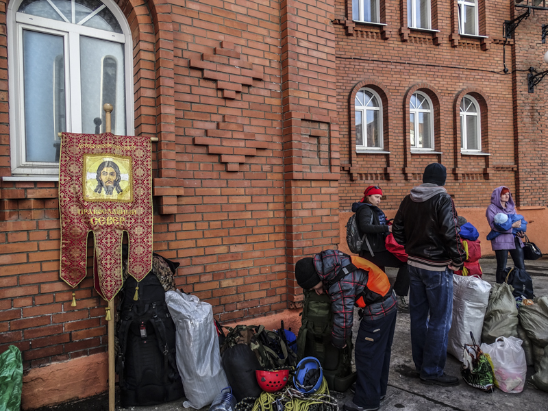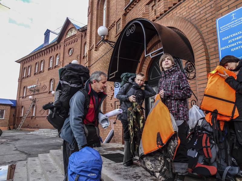 После молебна, ребята собрали свое походное снаряжение и заняли места в автобусе. Во дворе епархиального управления их провожали Владыка Агафангел, директор ДПЦ Татьяна Николаевна Пучканева и родители путешественников.