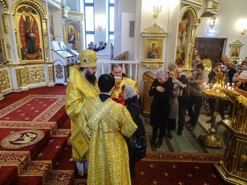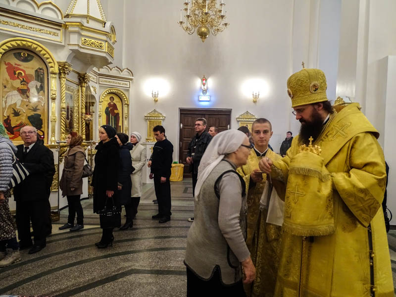 Его Преосвященству сослужили: секретарь Норильской епархии иеромонах Герман (Мельников) и духовенство кафедрального собора города Норильска. На Богослужении присутсвовали участники волонтерского движения Норильской епархии.
