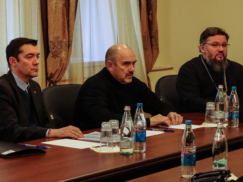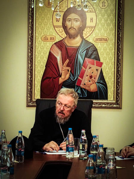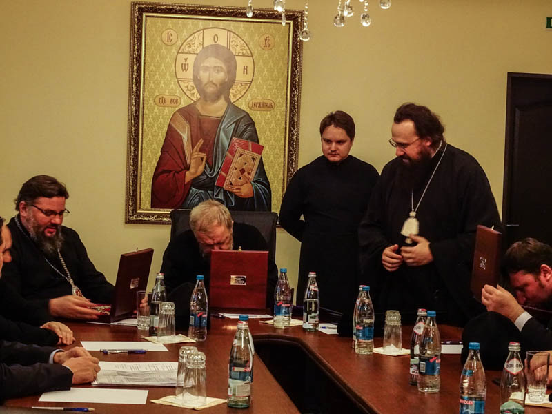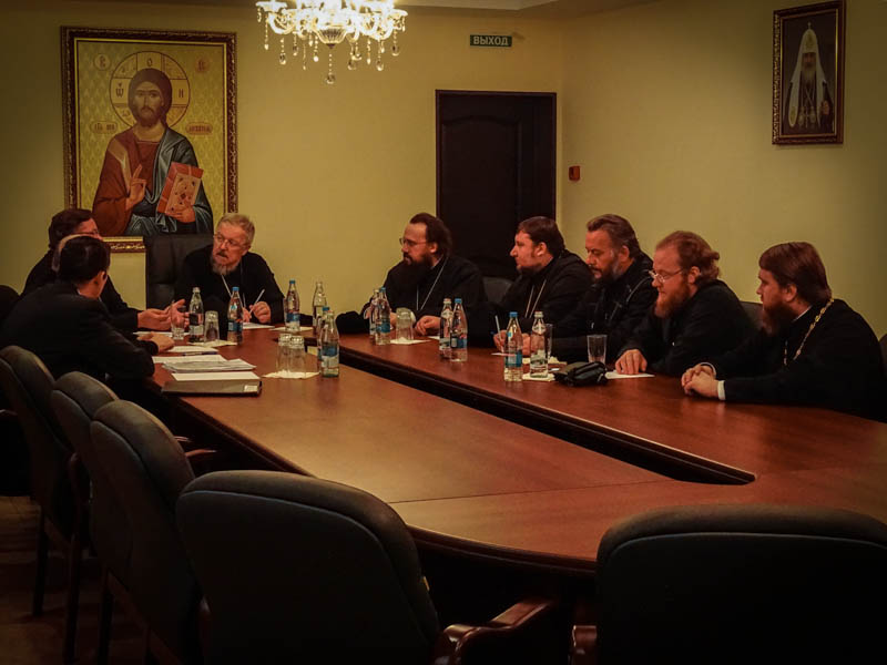 После осмотра кафедрального собора, архиереи направились в епархиальное управление города Норильска, где состоялось совещание по вопросам предстоящего визита Святейшего Патриарха Московского и Всея Руси Кирилла. Епископ Агафангел вручил прибывшим гостям скромые подарки.