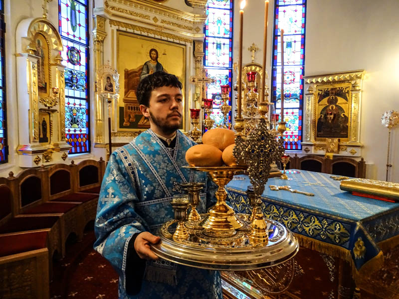 За Богослужением были вознесены особые прошения на сугубой ектении и прочитана молитва о мире на Украине.