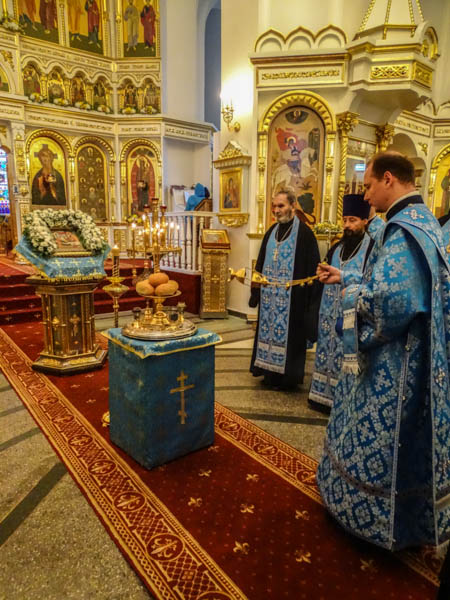По окончании Литургии Архипастырь в сослужении духовенства совершил славление перед иконой праздника. После Епископ обратился к собравшимся со словами проповеди и поздравил всех с праздником.