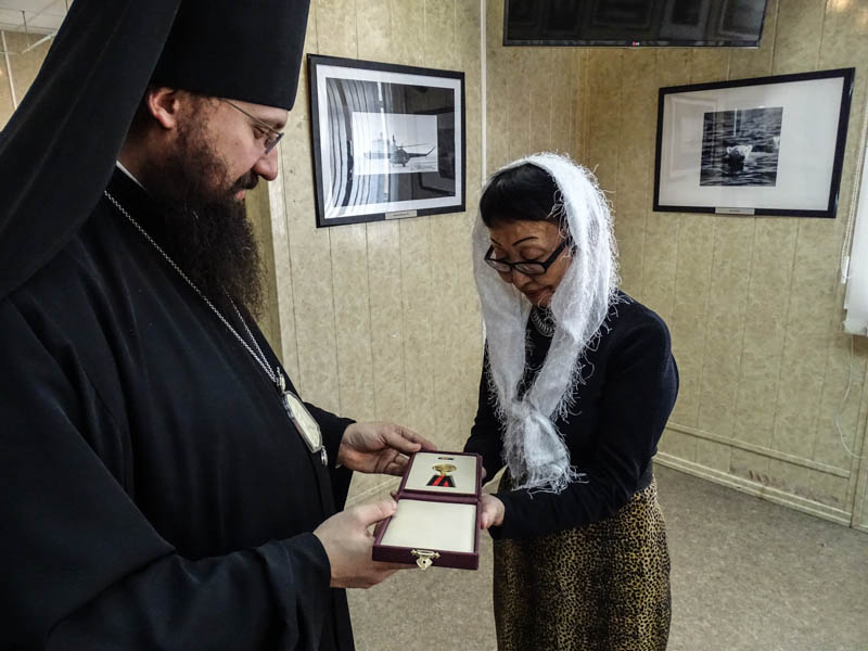 Владыка выразил благодарность всем потрудившимся в создании молитвослова и вручил Анне Алексеевне юбилейную медаль Русской Православной Церкви в ознаменование 1000-летия преставления святого равноапостольного князя Владимира.