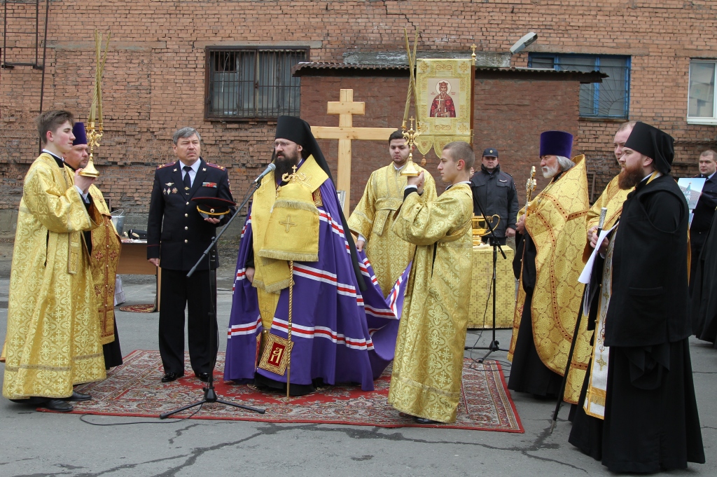 Его Преосвященству сослужили: благочинный Норильского округа протоиерей Владимир Иванов и руководитель епархиального отдела по взаимодействию с силовыми структурами протоиерей Димитрий Харцыз.