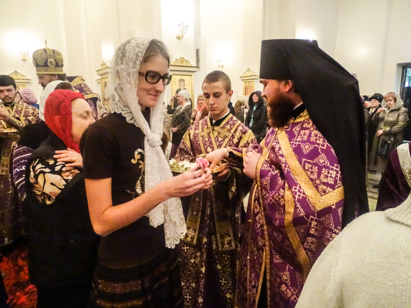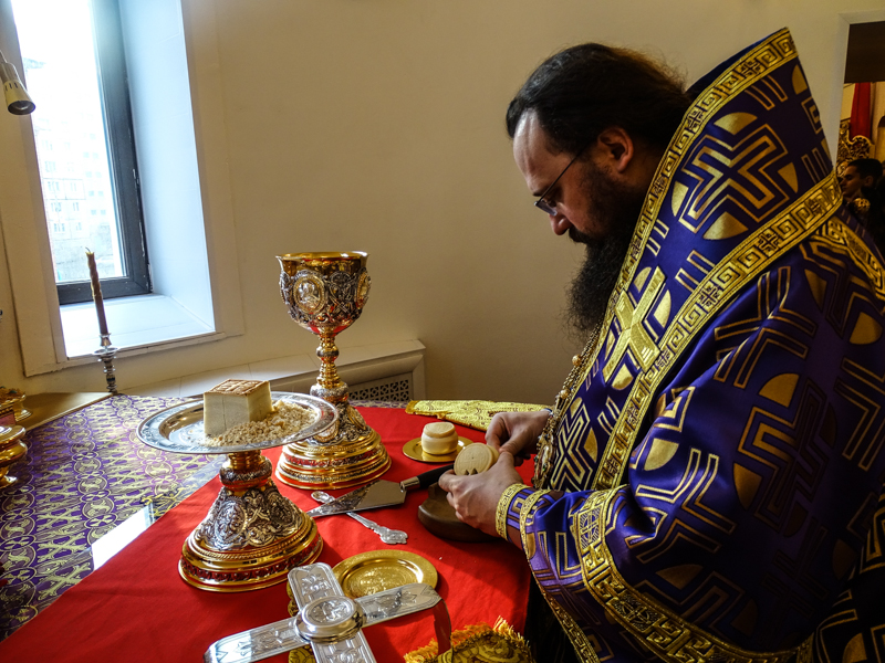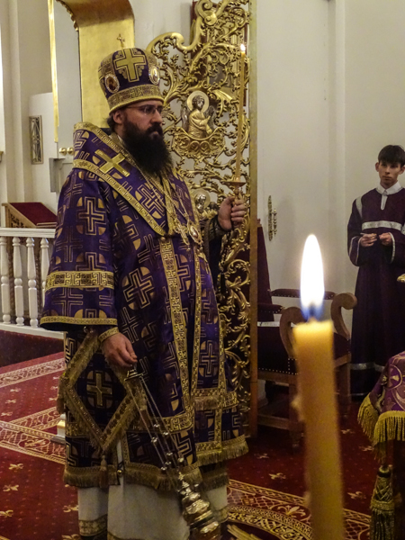 За Богослужением были вознесены особые прошения на сугубой ектении и прочитана молитва о мире на Украине.