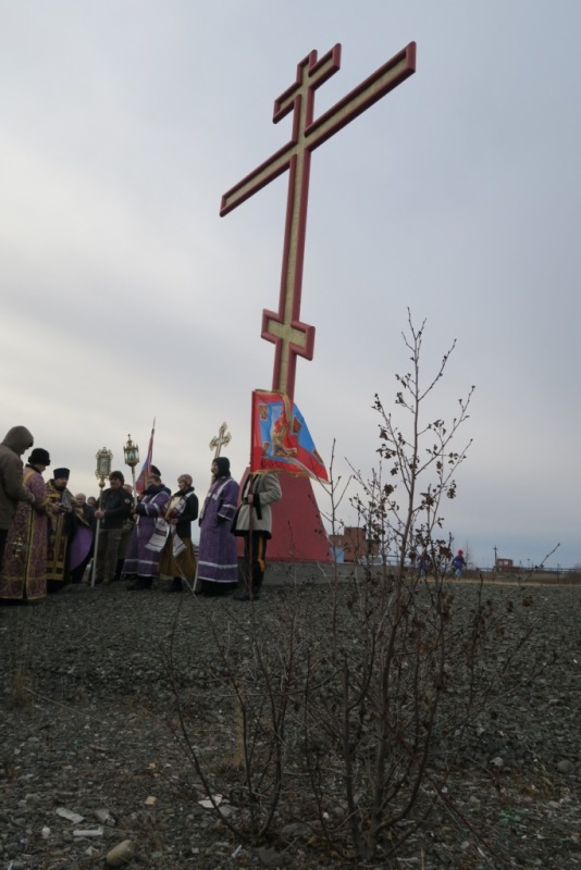 Возле Поклонного Креста был совершён молебен, посвящённый празднику и прочитана молитва Кресту Господню.