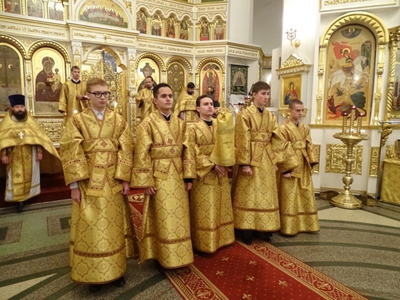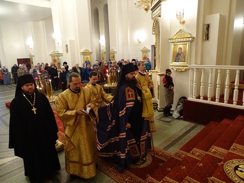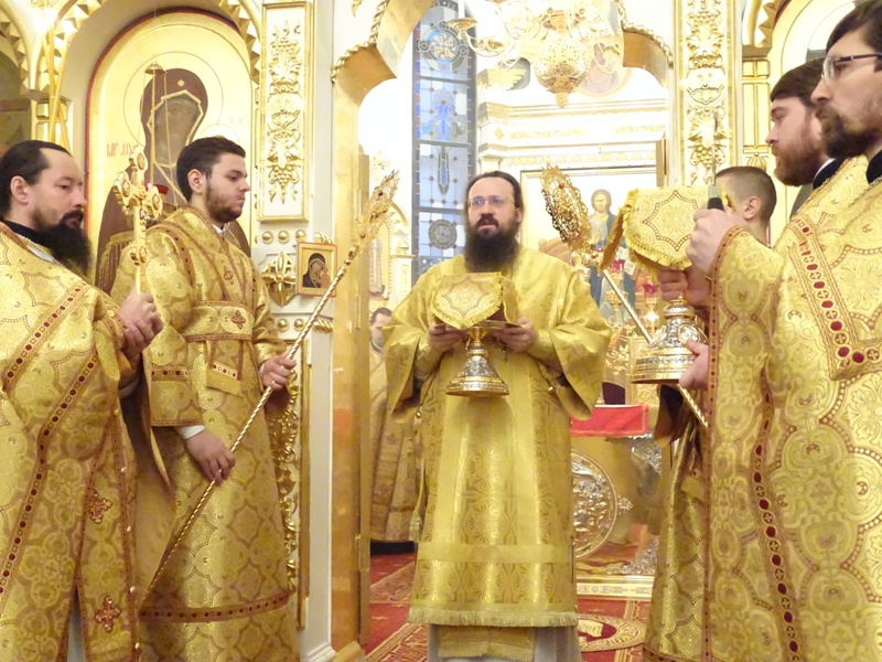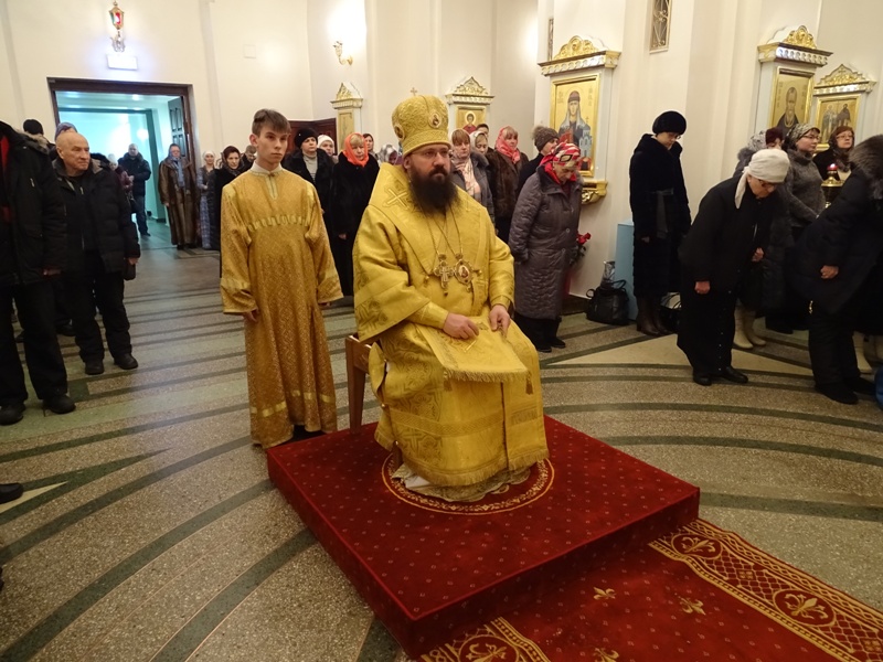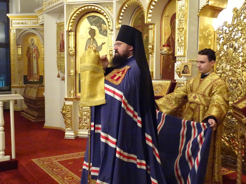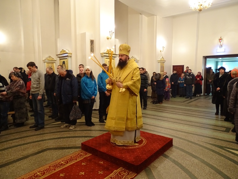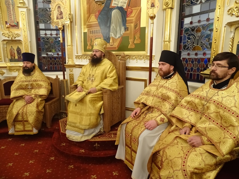 Его Преосвященству сослужили: секретарь Норильской епархии иеромонах Герман (Мельников) и штатный клир кафедрального собора города Норильска.
