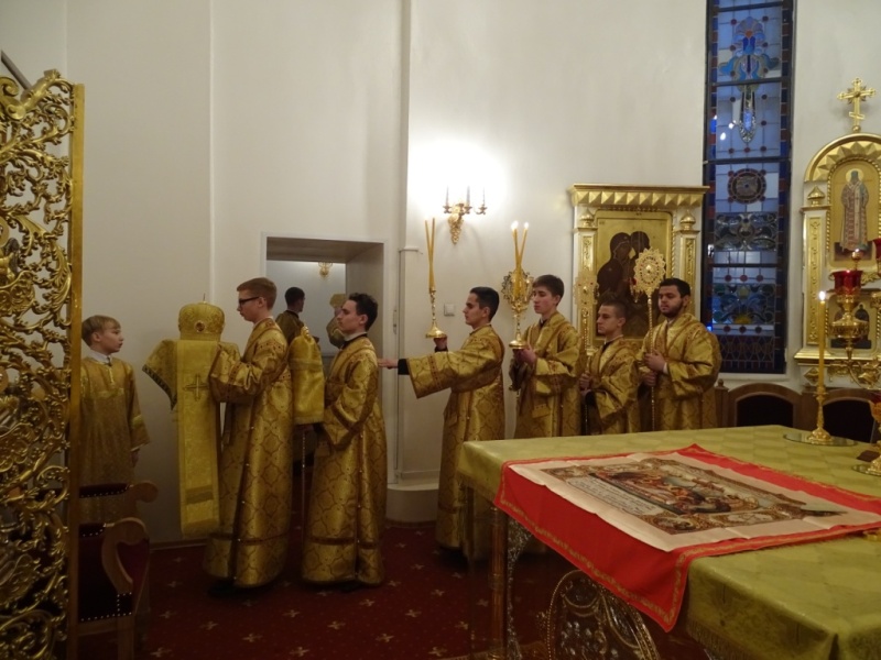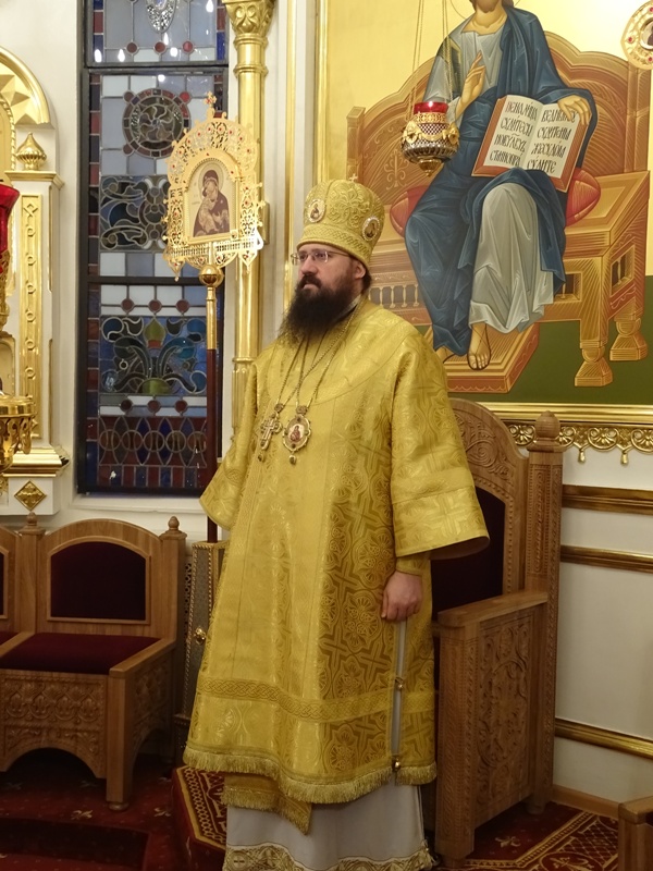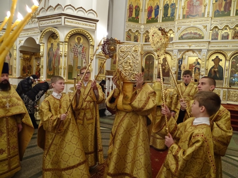После Божественной литургии Архипастырь в сослужении духовенства совершил славление перед иконой Божией Матери «Скоропослушница» и поздравил прихожан с воскресным днем, обратившись к ним со словами проповеди