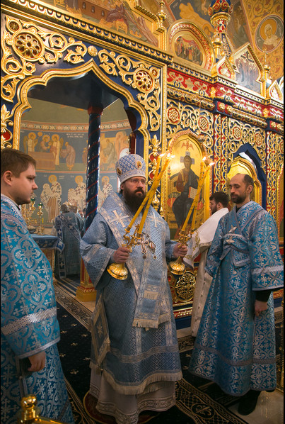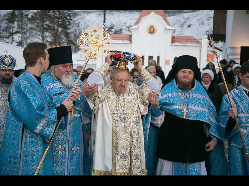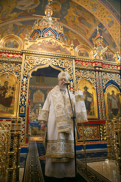 По окончании Литургии митрополит Пантелеимон обратился ко всем присутствующим с Архипастырским словом, выразив благодарность за труды, оказанные при возведении храма, духовенству, членам Попечительского совета Успенской обители, строителям и меценатам.