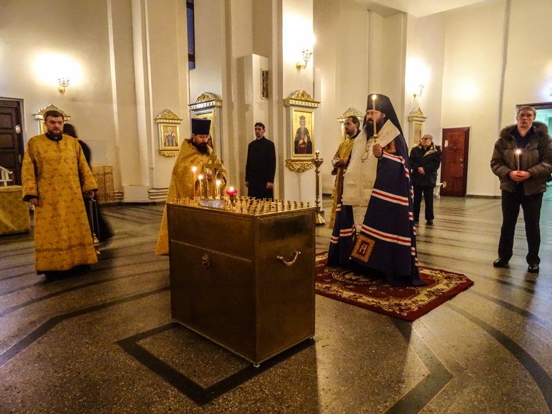 Преосвященнейший Агафангел, епископ Норильский и Туруханский, в сослужении соборного духовенства, совершил заупокойное богослужение в кафедральном соборе в честь иконы Божией Матери «Всех скорбящих Радость» города Норильска.