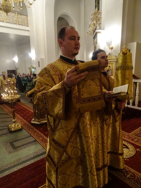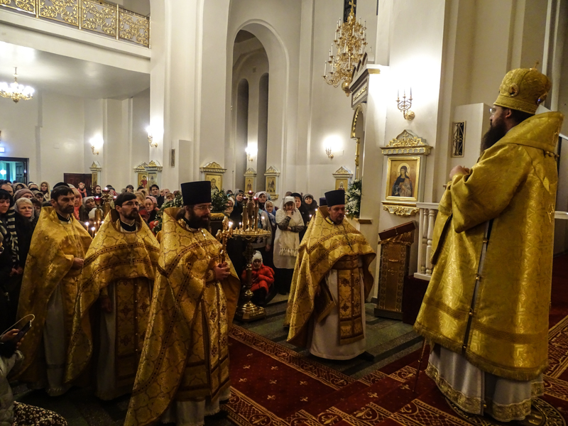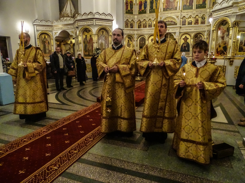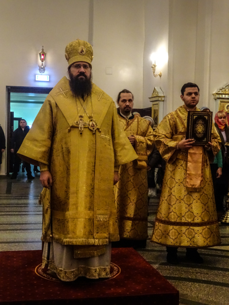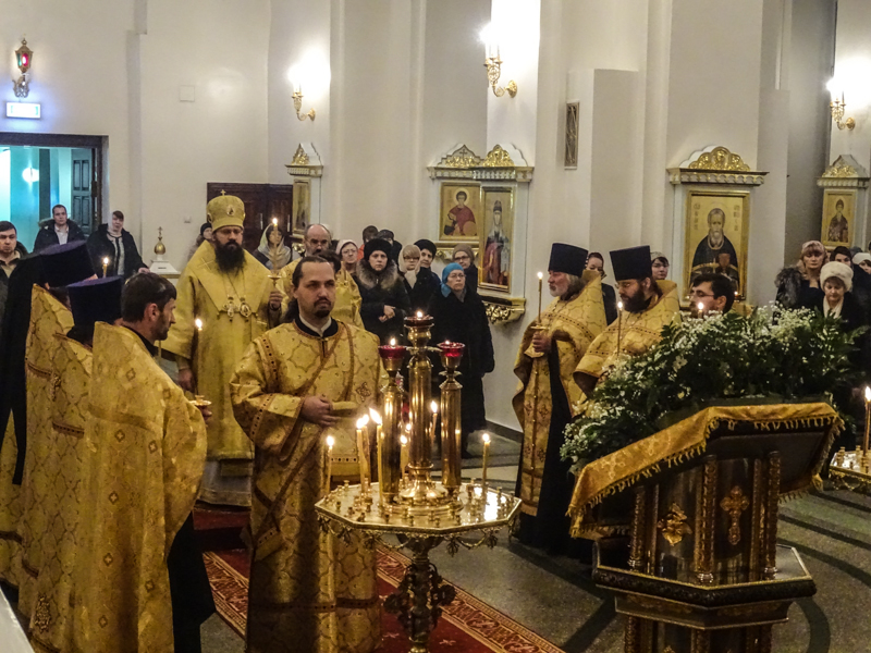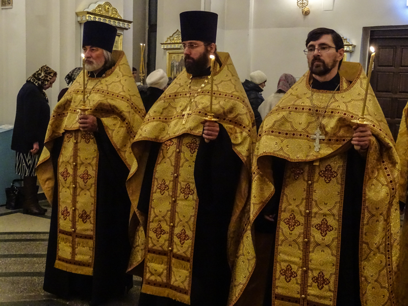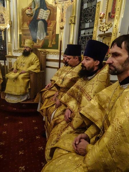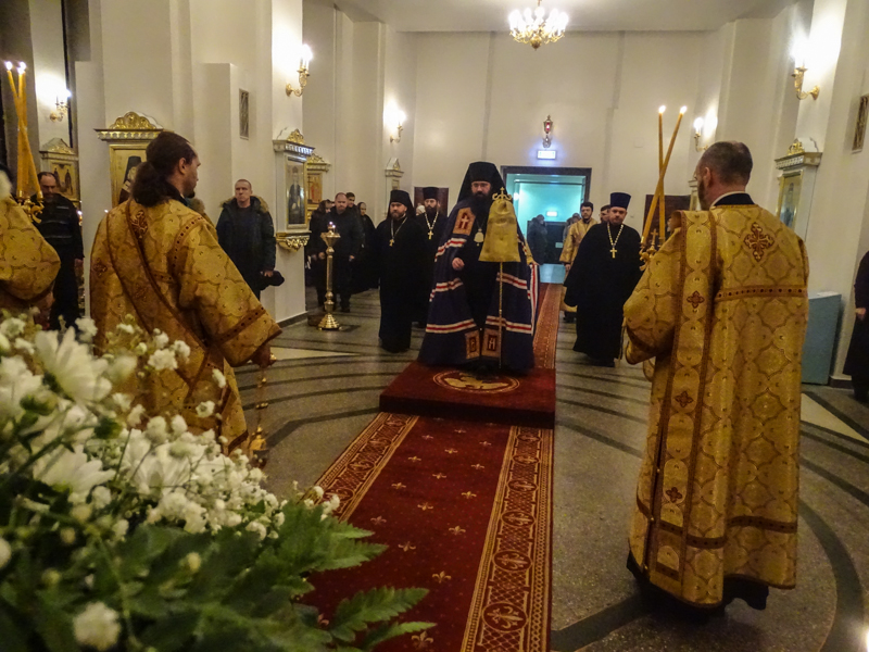 Архипастырю сослужили: секретарь епархии иеромонах Герман (Мельников), благочинный Норильского округа протоиерей Владимир Иванов, штатные клирики кафедрального собора.