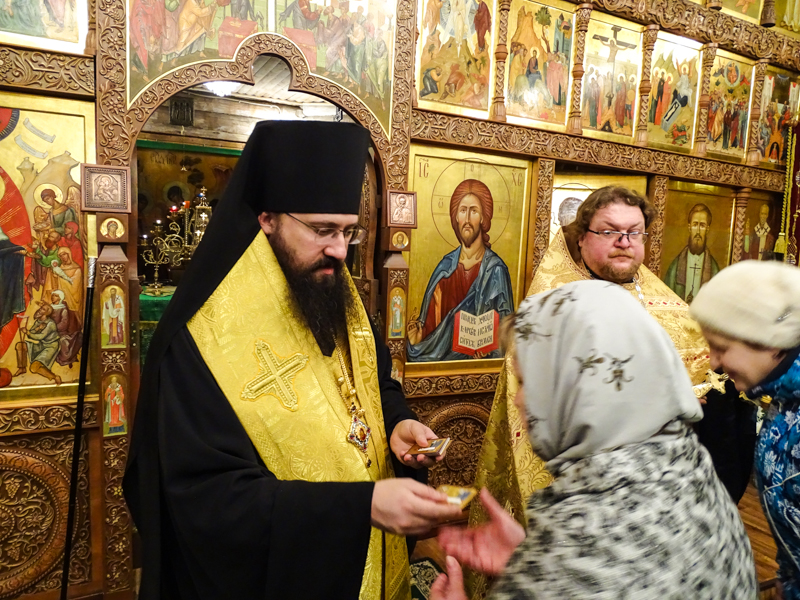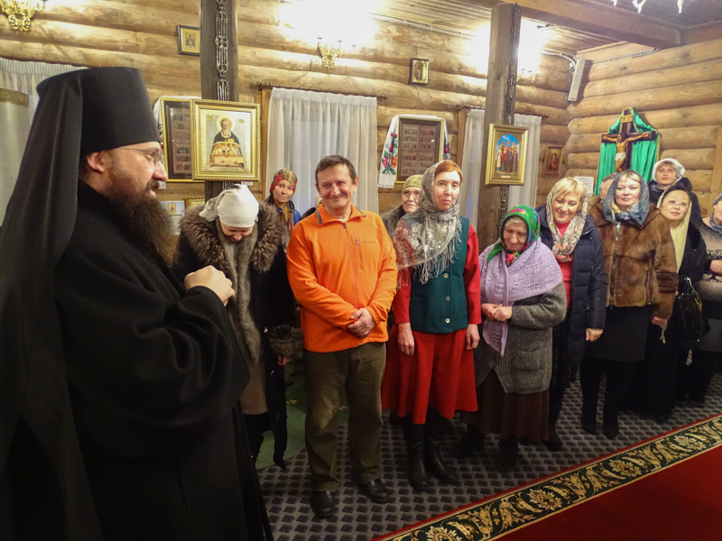 После молебна Владыка Агафангел обратился к прихожанам со словами проповеди, в которой поздравил приход с круглой датой и пожелал всем доброго здравия и долгоденствия. От лица всего прихода к Владыке с приветственным словом обратился настоятель храма. Отец Даниил поблагодарил епископа Агафангела за заботу о Талнахском приходе и внимание к пастве Норильской епархии. Всем прихожанам Архипастырь вручил иконки мученика Василия Мангазейского с благословением Святейшего Патриарха Московского и всея Руси Кирилла.