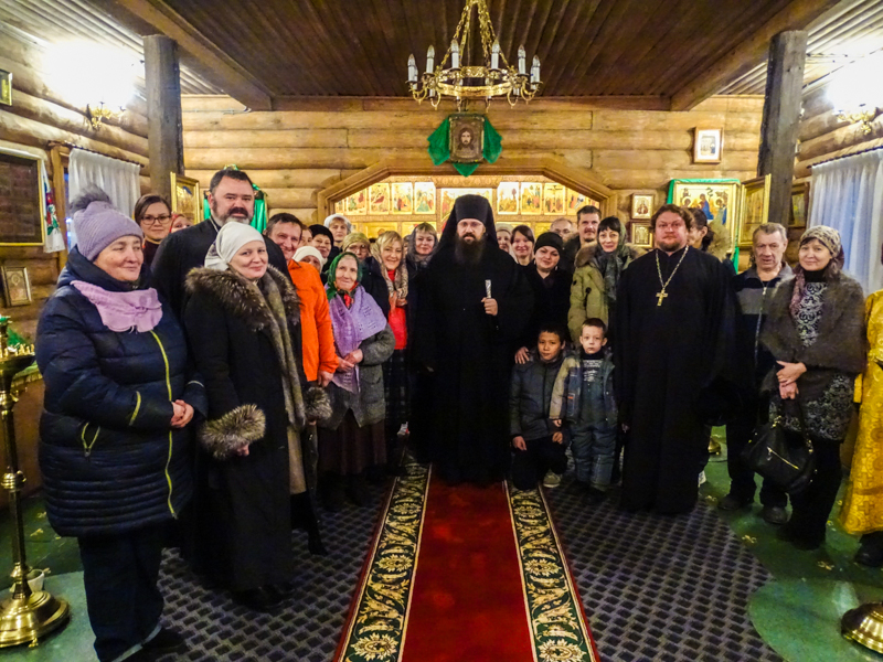 Владыка совершил Благодарственный молебен в храме Святой Троицы района Талнах. Его Преосвященству сослужили: настоятель Талнахского храма протоиерей Даниил Тихонов и штатный священник храма иерей Сергий Кузьменко.