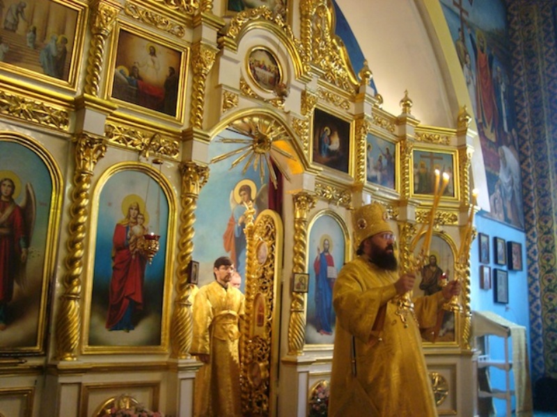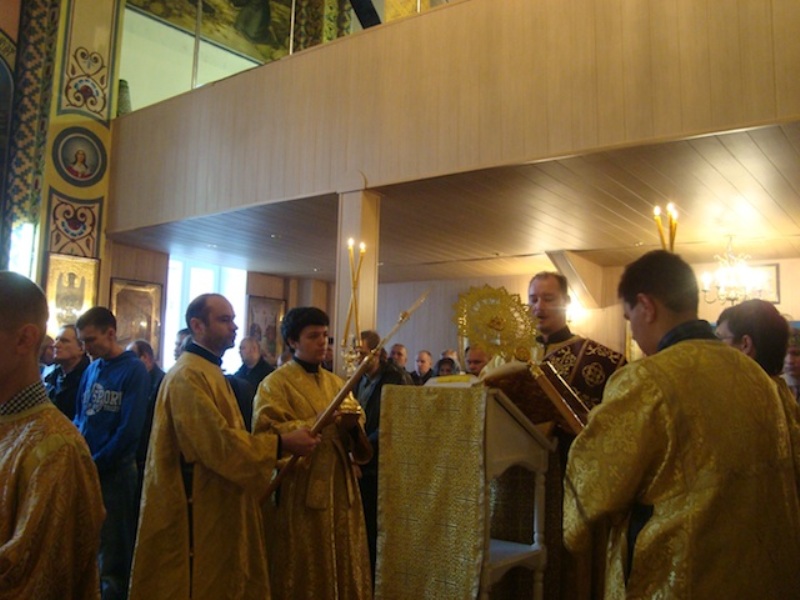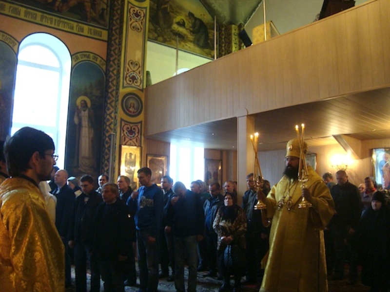 Небольшой храм с трудом вместил всех, пришедших на воскресное богослужение. В настоящее время подходят к завершению внутренние ремонтные работы в Кафедральном соборе в честь иконы Божьей Матери всех скорбящих Радость и служба праздника Преображения Господа Бога и Спаса нашего Иисуса Христа состоится в главном соборе города Норильска.