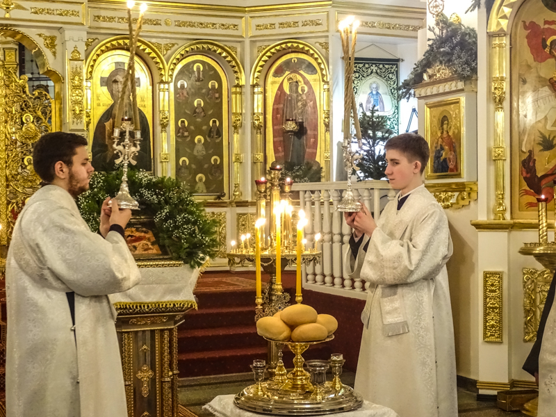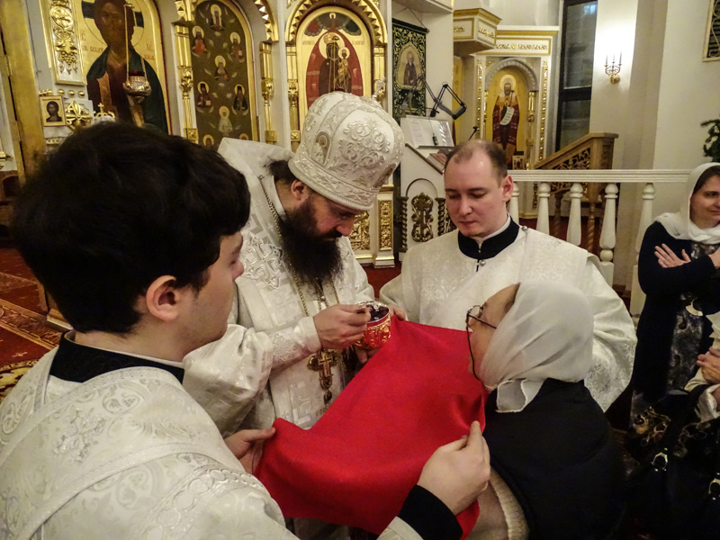 На литургии молящиеся возносили сугубые молитвы о мире на Украине.