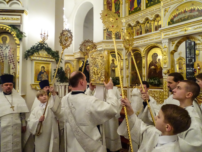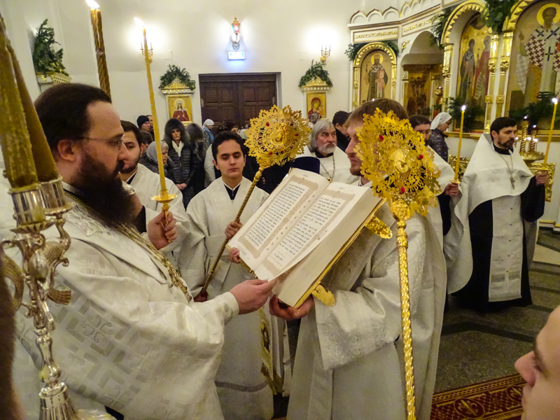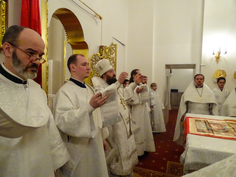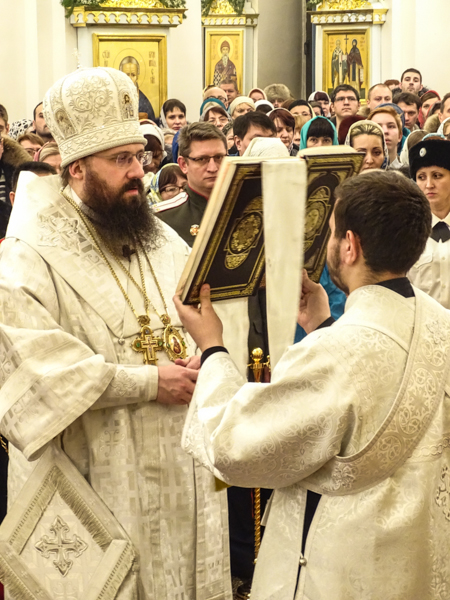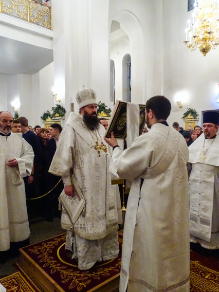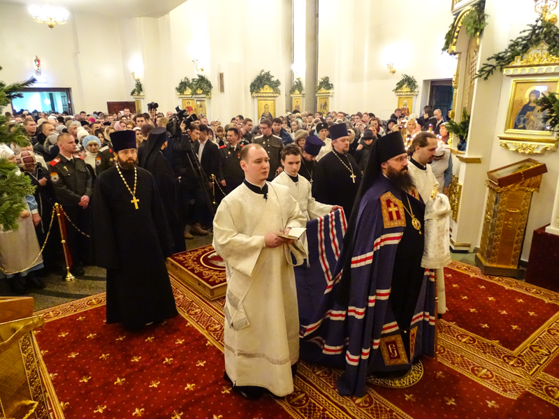 В завершении Богослужения епископ Агафангел огласил рождественское послание Патриарха Московского и всея Руси КИРИЛЛА ко всей полноте Русской Православной Церкви, а также поздравил с Рождеством Христовым всех собравшихся прославить Богомладенца.