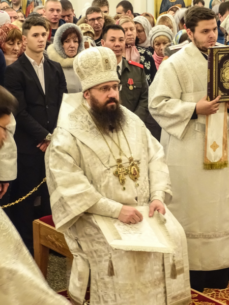 Преосвященнейшему Владыке сослужили: иеромонах Герман (Мельников) – секретарь Норильской и Туруханской епархии, соборное духовенство.