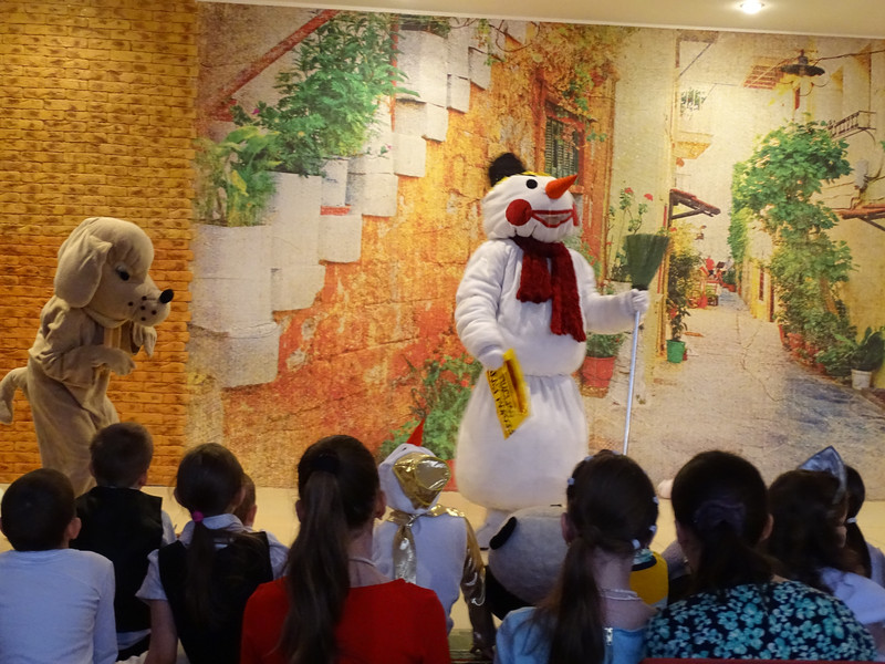 Затем было детское чаепитие с конфетами, горячими пирогами и традиционными мандаринами. Во время чаепития артисты повторили самые полюбившиеся зрителям песни.