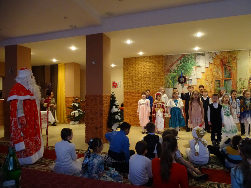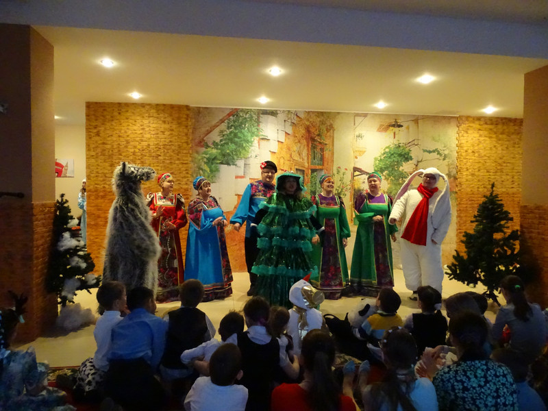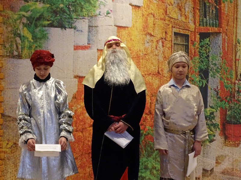 Открывался праздник рождественскими калядками и духовные песни, посвященные Рождеству Христову, а потом дети показали спектакль. Посвященный главным январским событиям – Рождеству и Новолетию. Сценарий написали, изготовили костюмы и декорации своими силами родители. Педагоги воскресной школы и прихожане.