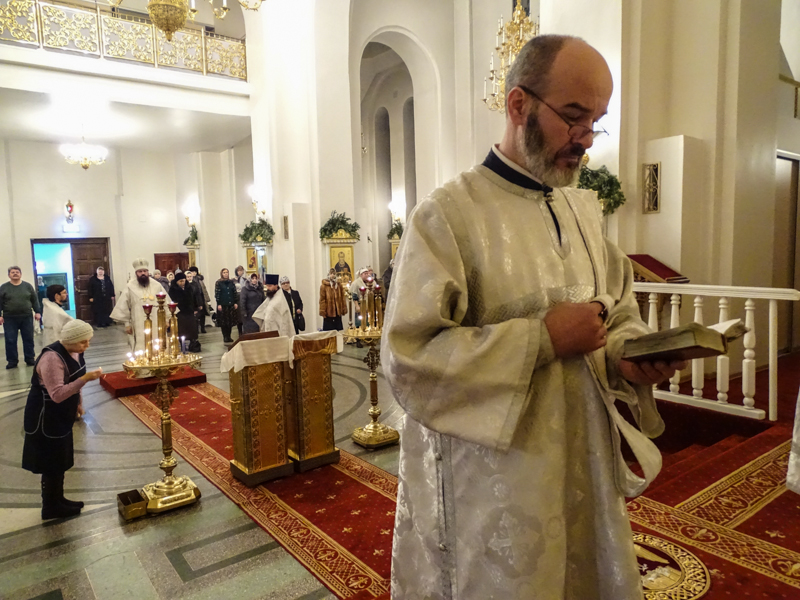 Его Преосвященству сослужили: секретарь Норильской епархии иеромонах Герман (Мельников), благочинный Норильского округа и ключарь кафедрального собора протоиерей Владимир Иванов, клирики кафедрального собора.