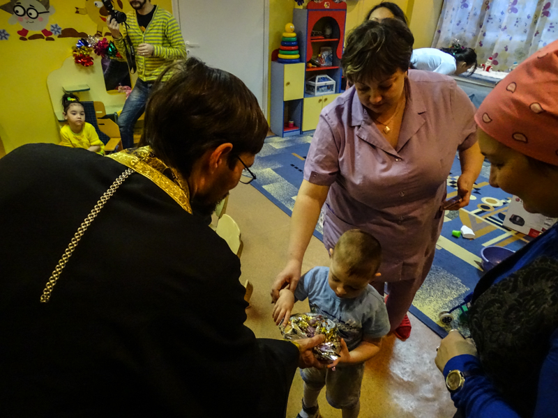В этот же день представители Сестричества милосердия и руководитель образовательного отдела Норильской епархии посетили детский дом «Ромашка» г. Дудинка, где раздали подарки шестидесяти воспитанникам. Подарки были собраны норильчанами во время прохождения акции «Добрый Норильск детям» в торгово-развлекательном центре «Арена», где каждый горожанин мог купить ребенку детского дома его мечту – машинку, куклу, варежки, набор LEGO и т.д.