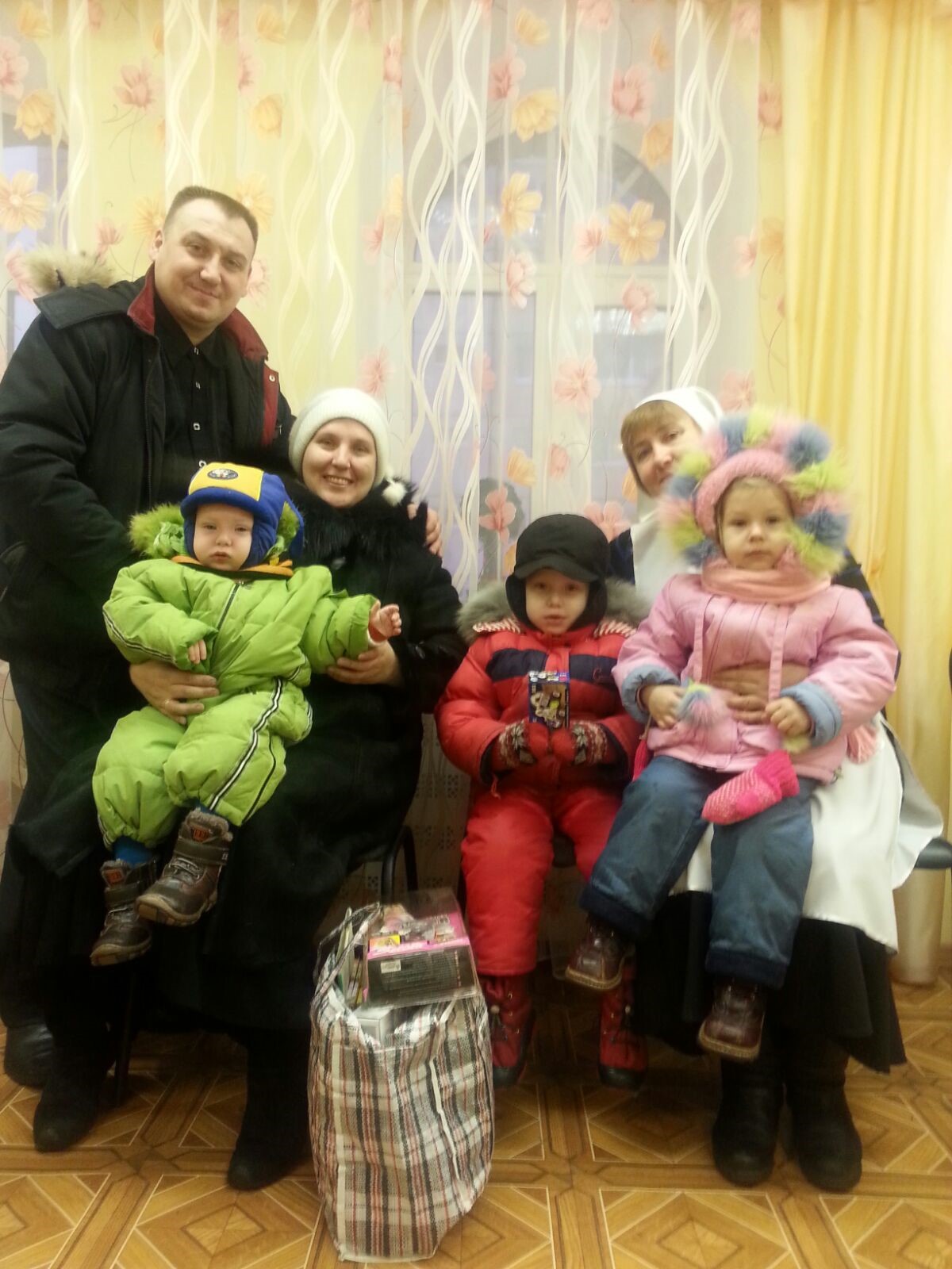 Тогда же огромный мешок игрушек от Деда мороза получила семья Новиковых, в которой воспитывается 9 детей (это тоже подопечные центра милосердия Норильска).